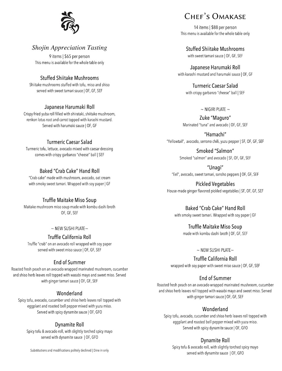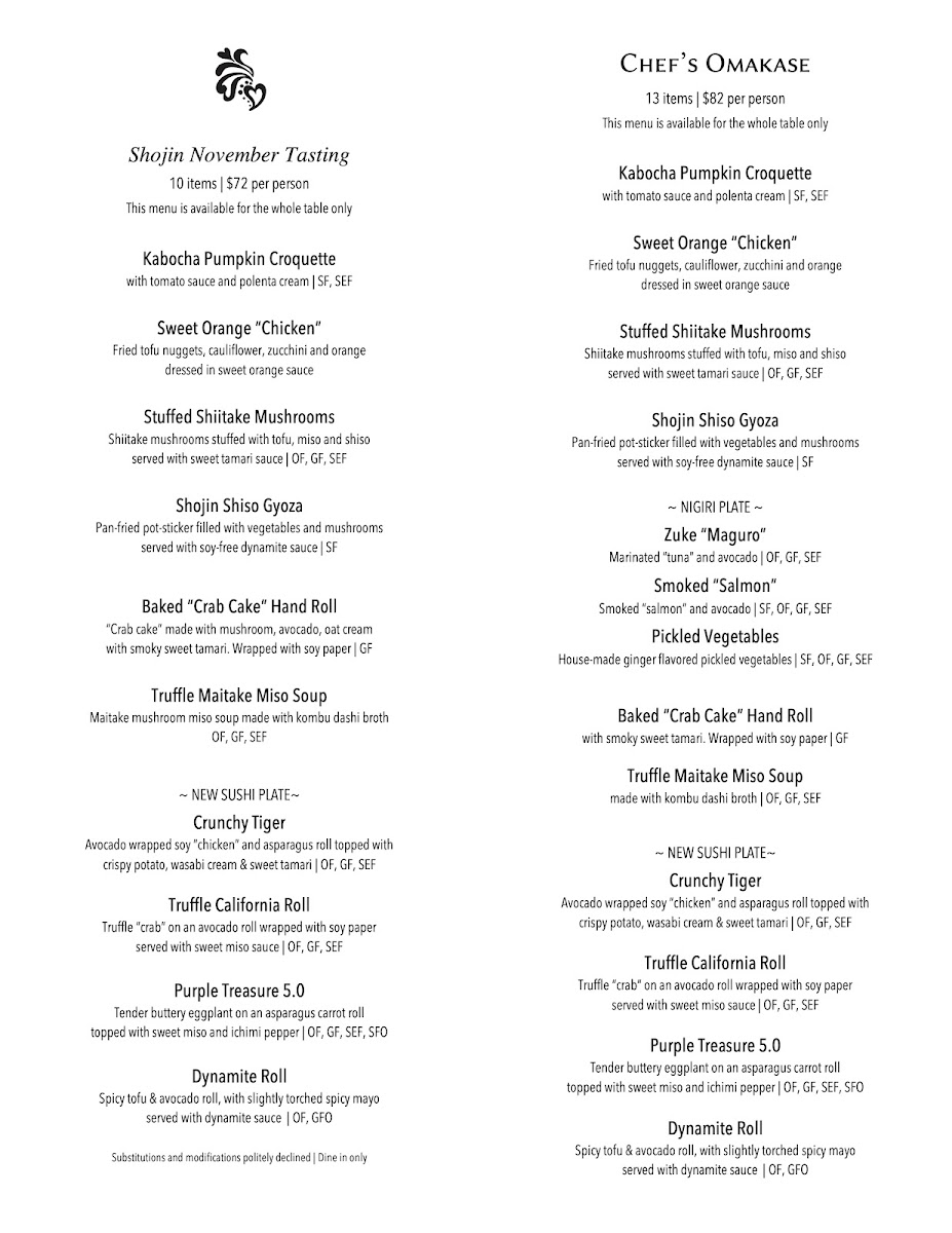 Shojin Menu